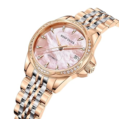 REEF TIGER Top Brand Luxury Women Steel Diamond Fashion Automatic Watch RGA1583-2