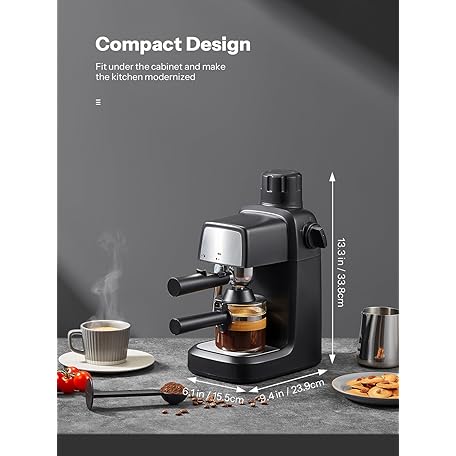 Thông tin sản phẩm Reemix Espresso Machine 3.5 Bar, 800W Compact Size Coffee Maker with Steam Wand, 4 Cups Cappuccino & Latte Machine for Home and Office