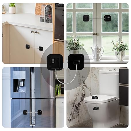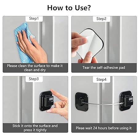 • Refrigerator Lock, Heavy Duty Fridge Lock, Combination Lock for Refrigerator Cabinets, Drawers, Safety Lock, Easy Install No Keys Needed (Black-4Pack)