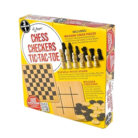 Sản phẩm Regal Games - Reversible Wooden Board for Chess, Checkers & Tic-Tac-Toe - 24 Interlocking Wooden Checkers and 32 Standard Chess Pieces - for Age 8 to Adult for Family Fun đang được bán với giá ưu đãi là $17.4291 tại nước Mỹ.