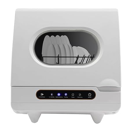 REHOUPTU Small Dishwasher, 1200W Portable Dishwasher Featuring 5L Built-in Water Tank, Low Noise, 6 Cleaning Modes, 360°Rotating Spray Outlets, Quick Dry, Ideal for Tiny Houses & RVs, White