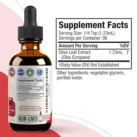 Rejuvica Health Active Olive Leaf 4oz XL Super Size Tincture - Advanced Olive Leaf Liquid Extract - Naturally Occurring Oleuropein - Immune & Heart Support Drops