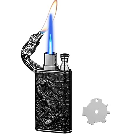 Relief Crocodile Magic Dual Flame Lighter with Adjusting Flame Tool, Windproof, Refillable Butane Lighter Gifts for Outdoor Indoor (Black)
