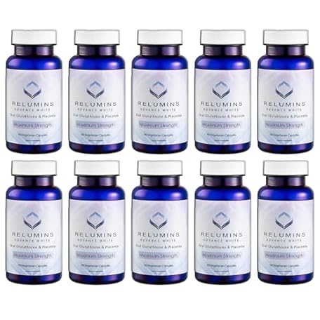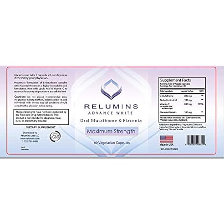 Thông tin sản phẩm Relumins Advanced White Glutathione Capsules - Max Strength Brightening Supplement with ALA, Placenta, Rose HIPS & Vitamin C - Fights Oxidative Stress, Supports Collagen & Made in USA - 10 Bottles