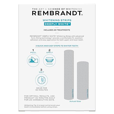 • Rembrandt Teeth Whitening Strips, Deeply White, Enamel-Safe, 40 Whitening Strips (20 Treatments)