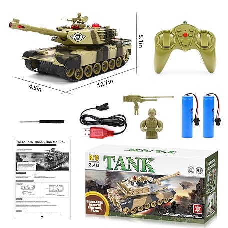 Thông tin sản phẩm Remote Control Tank for Boys - Kids Simulated Army Tank Toy, 1:28 Scale 8 Channels RC Tanks with Toy Soldiers, 2 Batteries, Rotating Turret & Sound, Military Toys Great Gift for Boys Age 8 9 10