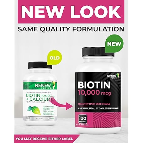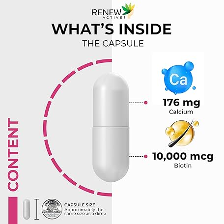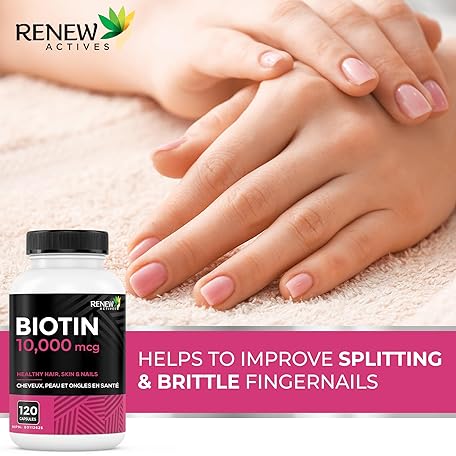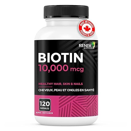 Thông tin sản phẩm Renew Actives Biotin & Calcium 10000MCG per Serving – Supplements for Hair, Nail & Skin Care – Promotes Bone & Teeth Health – Helps Prevent Biotin Deficiency - Made in Canada – 120 Capsules