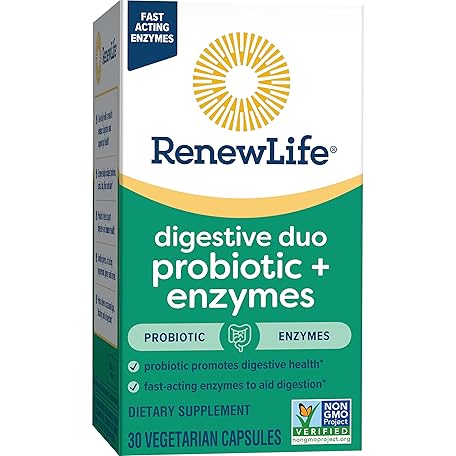 Sản phẩm Renew Life Digestive Duo Probiotic and Enzymes Vegetarian Capsules, Probiotic Promotes Digestive Health, Fast-Acting Enzymes Aid Digestion, With Soothing Herbs - 30 Count đang được bán với giá ưu đãi là $15.3145 tại nước Mỹ.