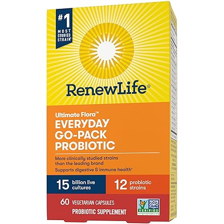 Thông tin sản phẩm Renew Life Everyday Go-Pack Probiotic Capsules, Daily Supplement Supports Urinary, Digestive and Immune Health, L. Rhamnosus GG, Dairy, Soy and gluten-free, 15 Billion CFU, 60 Count