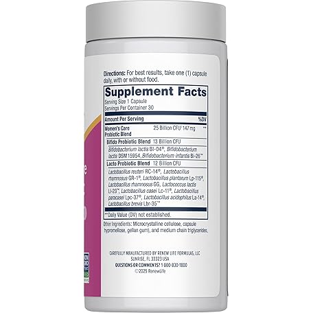 Thông tin sản phẩm Renew Life Probiotics for Women, 25 Billion CFU Guaranteed, Probiotic Supplement for Digestive, Vaginal & Immune Health, Shelf Stable, Soy, Dairy & Gluten Free, 30 Capsules