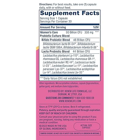 Thông tin sản phẩm Renew Life Women's Probiotic Capsules, Supports pH Balance for Women, Vaginal, Urinary, Digestive and Immune Health, L. Rhamnosus GG, Dairy, Soy and Gluten-Free, 90 Billion CFU - 30 Ct