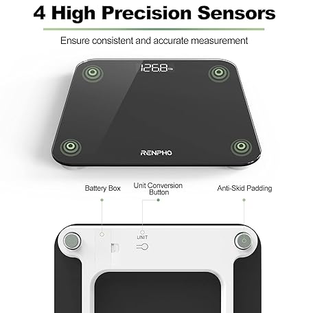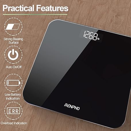 Thông tin sản phẩm RENPHO Scale for Body Weight, Mechanical Bathroom Weighing Scale, Highly Accurate & Measures Weight up to 400 lb/180kg, Batteries Included, Black-Core 1S