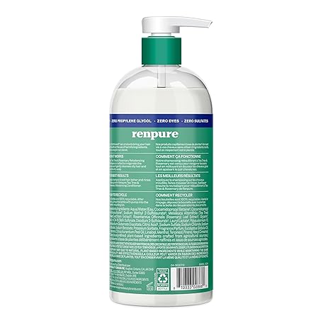 Thông tin sản phẩm Renpure Plant Based Tea Tree and Rosemary Refresh and Rebalance Shampoo - Soothes Dry Scalp - Delivers Moisture and Shine - Rids Hair of Grime - Dye Free - Recyclable, Pump Bottle Design - 24 fl oz