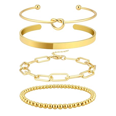 Sản phẩm Reoxvo Christmas Stocking Stuffers Gifts for Women-Gold Plated Bangle Cuff Bracelets for Women Non Tarnish Gold Bracelet Stack Jewelry Set for Women Trendy đang được bán với giá ưu đãi là $14.1591 tại nước Mỹ.