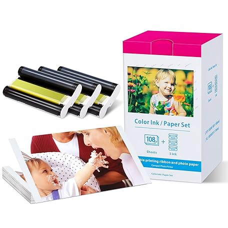Thông tin sản phẩm Replace Selphy CP1500 Ink and Paper Compatible Canon CP1300, CP1500, CP1200, CP910, CP1000, CP900, CP800, CP810 Paper and Ink KP-108IN Selphy Photo Paper Glossy 4 x 6, 108 Sheets, 3 Color Ink Cassette