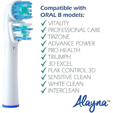 Thương hiệu Alayna là cái tên nổi tiếng được rất nhiều khách hàng trên thế giới chọn lựa. Với kiểu dáng đẹp mắt, sang trọng, sản phẩm Replacement Brush Heads Compatible with OralB Braun- Best Double Clean, Pack of 8 Electric Toothbrush Replacement Heads- for Oral B Pro, 1000, 8000, 9000, Adults, Kids, Vitality, Dual Plus! là sự lựa chọn hoàn hảo nếu bạn đang tìm mua một món cho riêng mình.