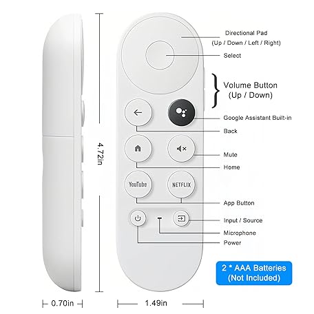 • Replacement for Google Chromecast Remote (G9N9N) - Compatible with Chromecast 4K Snow/HD TV Streaming Stick, Voice Search Control