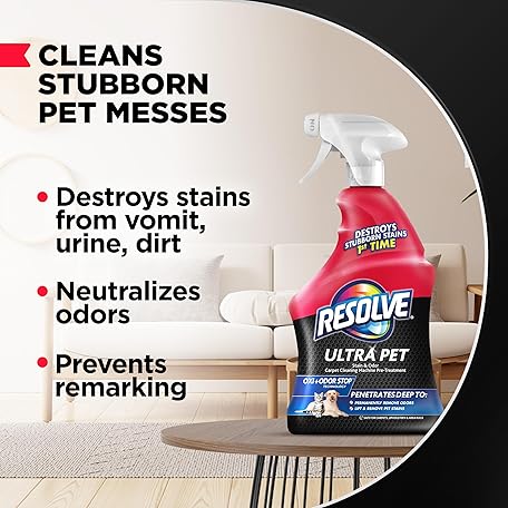 Sản phẩm Resolve Ultra Pet Odor and Stain Remover Spray – Carpet Cleaner for Cat and Dog Urine and Poop, 32oz đang được bán với giá ưu đãi là $10.3114 tại nước Mỹ.