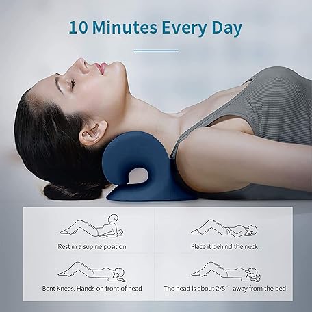 Thông tin sản phẩm RESTCLOUD Neck and Shoulder Relaxer, Cervical Traction Device for TMJ Pain Relief and Cervical Spine Alignment, Chiropractic Pillow, Neck Stretcher (Dark Blue)
