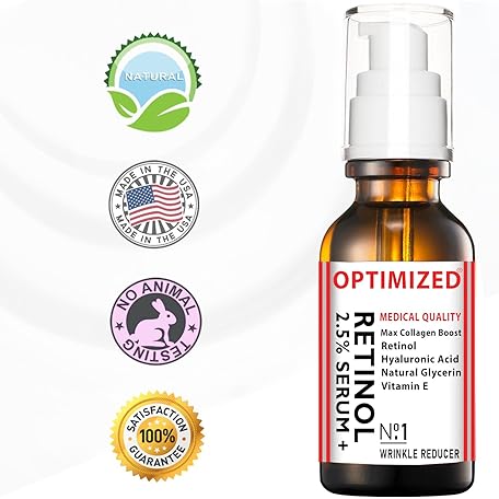 Thương hiệu OPTIMIZED là cái tên nổi tiếng được rất nhiều khách hàng trên thế giới chọn lựa. Với kiểu dáng đẹp mắt, sang trọng, sản phẩm Retinol Serum 2.5% with Hyaluronic Acid, Glycerin, Vitamin E - Reduce Wrinkles, Fine Lines, Even Skin Tone, Sun Spots, Age Spots - Boost Collagen Production 1 fl oz - OPTIMIZED LAB Guaranteed là sự lựa chọn hoàn hảo nếu bạn đang tìm mua một món cho riêng mình.