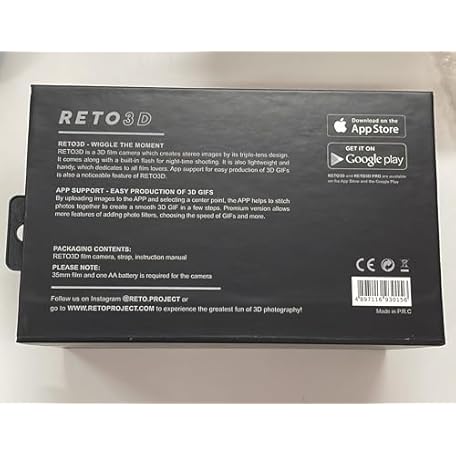 Sản phẩm RETO Reto3D 35mm 3D Film Camera - Retro Lenticular 3D Effect Boomerang Wigglegram Camera đang được bán với giá ưu đãi là $71.9291 tại nước Mỹ.