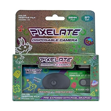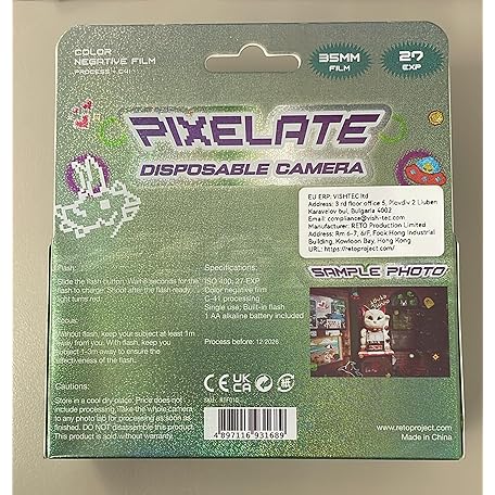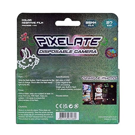 Thông tin sản phẩm Retocolor Pixelate 400 35mm Disposable Film Camera 27EXP, ISO400, Color Negative Film, Focus Free, Easy to Use, Built in Flash, Single Use (Film and Battery Included) (Pixelate)