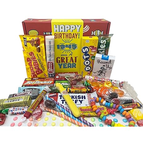 • RETRO CANDY YUM ~ 80th Birthday Nostalgic Candy Gift Basket Box Assortment from Childhood Memories for Woman or Man Born 1945 jr