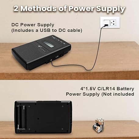 Retro Cassette Player & Tape Recorder with Standalone Mircophone, Portable Tape to USB Digital Converter, Carrying Handle, 3.5MM Headphone Jack, Play & Digitize Old Cassettes