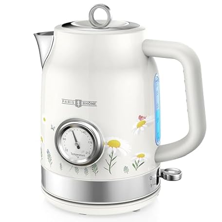 Retro Electric Kettle, PARIS RHÔNE 1.7L Hot Tea Kettle with Thermometer, 1500W Fast Heating, Cordless Design, LED Indicator, Auto Shut-Off & Boil Dry Protection