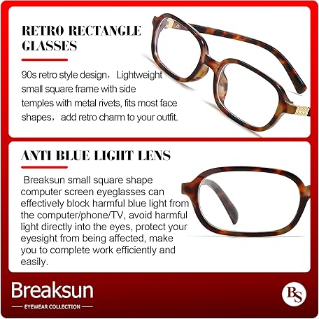Thương hiệu Breaksun là cái tên nổi tiếng được rất nhiều khách hàng trên thế giới chọn lựa. Với kiểu dáng đẹp mắt, sang trọng, sản phẩm Retro Rectangle Glasses for Women Men Small Square Blue Light Blocking Glasses Vintage Eyeglasses là sự lựa chọn hoàn hảo nếu bạn đang tìm mua một món cho riêng mình.