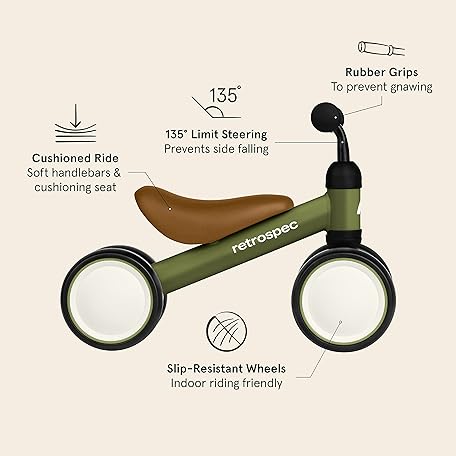 Thương hiệu Retrospec là cái tên nổi tiếng được rất nhiều khách hàng trên thế giới chọn lựa. Với kiểu dáng đẹp mắt, sang trọng, sản phẩm Retrospec Cricket Baby Walker Balance Bike with 4 Wheels for Ages 12-24 Months - Baby Toys & Toddler Toys for 1 Year Olds - Ride On Bicycle - Boys & Girls là sự lựa chọn hoàn hảo nếu bạn đang tìm mua một món cho riêng mình.