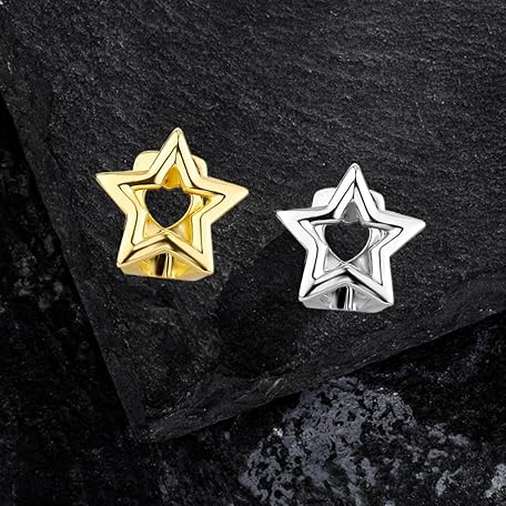 Retzjorv 2PCS 14K Gold-Plated Hip Hop Teeth Grillz Hollow Star Single Tooth Grillz Caps Top or Bottom Teeth Grills for Your Teeth Fashion Party Jewelry