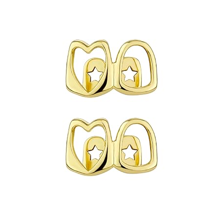 Retzjorv 2Pcs 14K Gold Plated Hip Hop Teeth Grillz Punk Custom Fit Teeth Grillz Caps Hollow Out Double Teeth Grills for Your Teeth Gold Grillz for Men Women