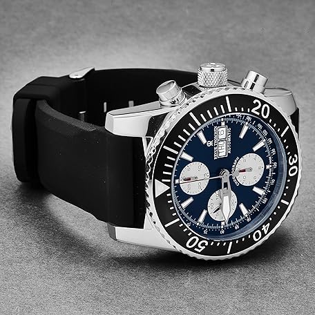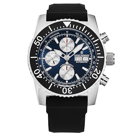 Revue Thommen Men's 17030.6525 'Divers' Blue Dial Day-Date Chronograph Blue Dial Black Rubber Strap Automatic Watch