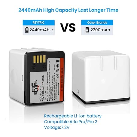 Thông tin sản phẩm REYTRIC 2-Pack Batteries Compatible with Arlo Pro, Arlo Pro 2 (VMA4400), Upgraded 7.2V Rechargeable Lithium Li-ion Batteries Pack with Dual LCD Charger