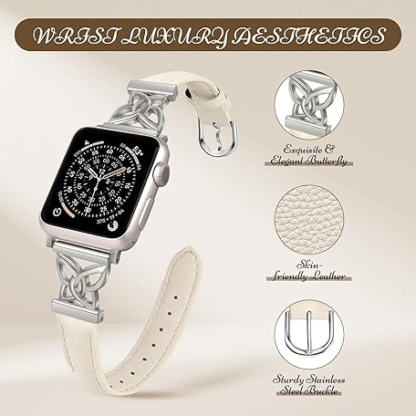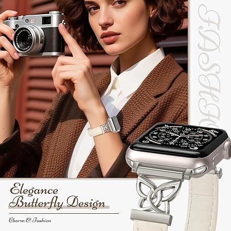 Thông tin sản phẩm REYUIK Leather Band Compatible with Apple Watch Ultra 3/2/1 & SE 3/2/1 & Series 11 10 9 8 7 6 5 4 3 49mm 46mm 45mm 44mm 42mm 41mm 40mm 38mm Women, Butterfly Dressy Slim Strap for iWatch Series Ultra 3/2/1 SE 3/2/1 S10 S11 S9