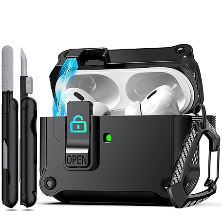 Sản phẩm RFUNGUANGO for AirPods Pro 2nd/1st Generation Case Cover with Secure Lock Clip,Automatic Pop-up Case Full-Body Shockproof Hard Protective Cover for AirPods Pro 2 (2023/2022/2019) - Black đang được bán với giá ưu đãi là $10.8782 tại nước Mỹ.