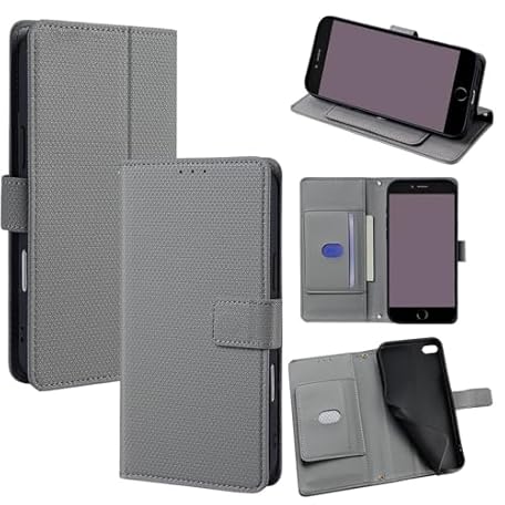 • Rfvzubemok Compatible with Rakuten Hand 4G Flip Kickstand Magnetic Closure Card Slot Wallet Case Gray