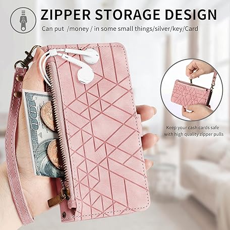 Rfvzubemok Compatible with ZTE Rakuten Hand Case,Compatible with ZTE Rakuten Hand 5G Card Holder PU Leather Flip Stand Magnetic Closure Phone Cover Pink