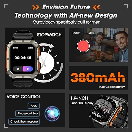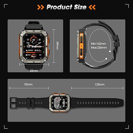 Thông tin sản phẩm Rgthuhu Military Smart Watch for Men with Blood Pressure (Answer/Make Call), Rugged Tactical Smartwatch for Android and iPhone, 10 ATM Waterproof Outdoor Sports Fitness Tracker with Heart Rate, Sleep Monitor