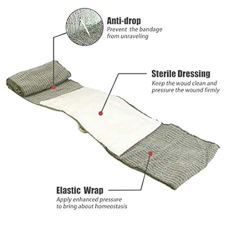 Thông tin sản phẩm RHINO RESCUE 6" Israeli Style Emergency Bandage, Compression Trauma Wound Dressing, Medical Sterile Vacuum Sealed, Combat Tactical First Aid Kit IFAK Supplies, 2 Count