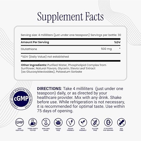 Thông tin sản phẩm Rho Nutrition Liposomal Glutathione - Ultra High Absorption Liquid Glutathione Supplement - Supports Natural Detoxification, Immune System, Skin Health, Mental Clarity & Overall Well-Being