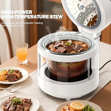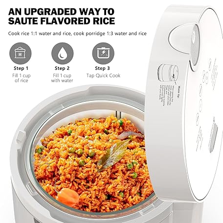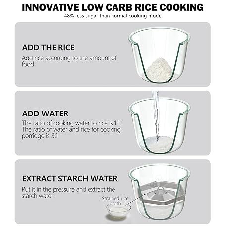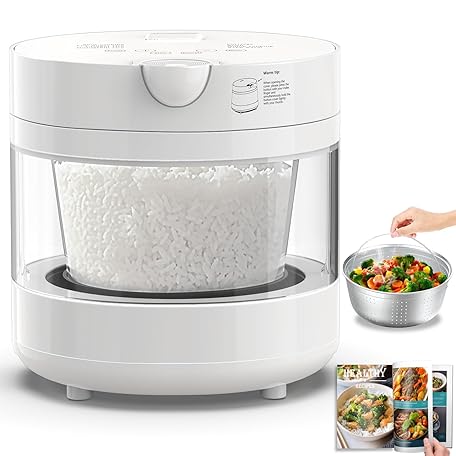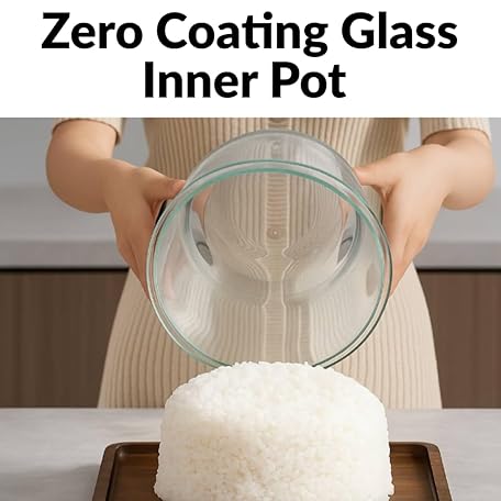 Thông tin sản phẩm Rice Cooker Low Carb, Low Sugar, 6 Cup Glass Rice Cooker Inner Pot Zero Coating, Stainless Steel Steamer Basket, Multifunction with Steam, Slow Cook, Perfect for Fitness & Family