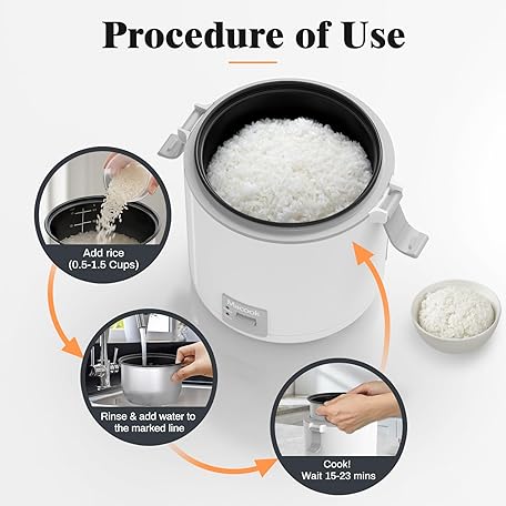 Thông tin sản phẩm Rice Cooker Small 1-1.5 Cups Uncooked(3 Cups Cooked), Mini Rice Cooker with Removable Nonstick Pot, One Touch&Keep Warm Function, Travel Rice Cooker for Soup Grain Oatmeal Veggie, White