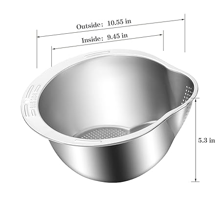 Sản phẩm Rice Washer Strainer Bowl - 4-in-1 Washing Bowl for Quinoa, Stainless Steel Rinser With Side Drainers Small Colander for Cleaning Fruits, Vegetables, and Beans - Versatile Kitchen Tool đang được bán với giá ưu đãi là $20.6991 tại nước Mỹ.