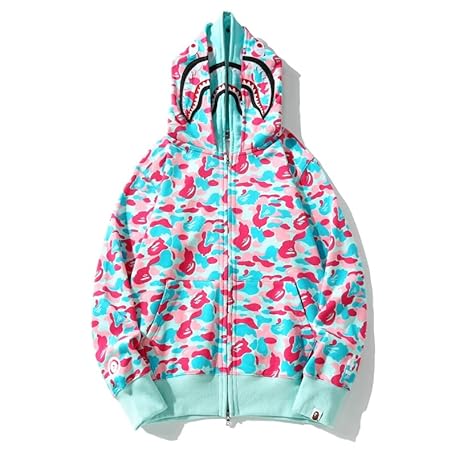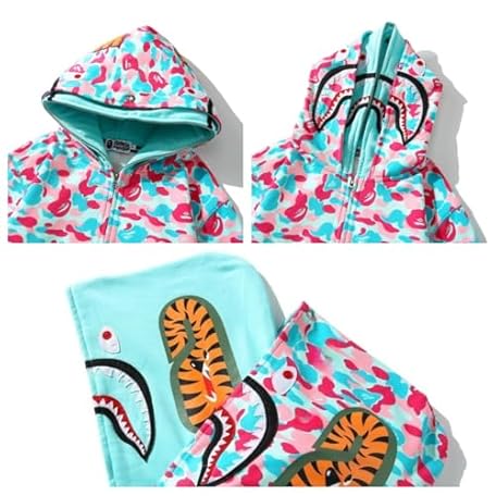 • RICK TOP ONE Shark Double-Layer Hooded Zip-Up Hoodie: Trendy Youth Full-Zip Hip Hop Streetwear Sweatshirt for Men
