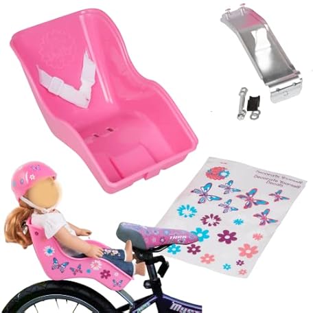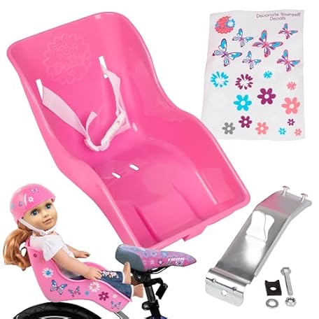 Ride Along Dolly Doll Bicycle Seat- The Original Bike Attachment for 18"-22" Dolls and Stuffed Animals- Decorate Yourself Decals Included, Fits Most Bikes, Birthday (Pink)- Christmas