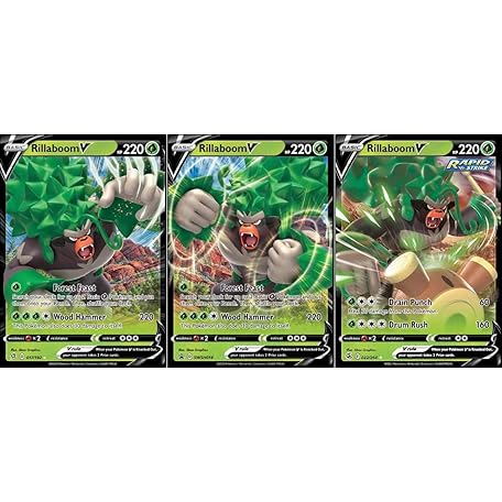 Rillaboom V - Pokemon 3 Card Lot - SWSH014-017/192 - Rebel Clash - Fusion Strike - Black Star Promo