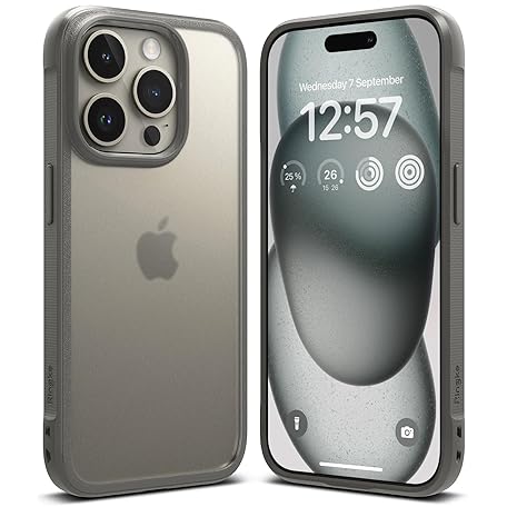 Ringke Fusion Bold for iPhone 15 Pro Max Case, Textured Sides for Grip, Anti-Yellowing Technology, Frosted Clear Back Resists Smudges - Matte Gray