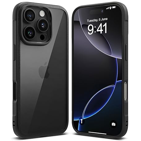 Ringke Fusion Bold for iPhone 16 Pro Case, Textured Sides for Grip, Anti-Yellowing Technology, Clear Back to Show Phone Color - Black